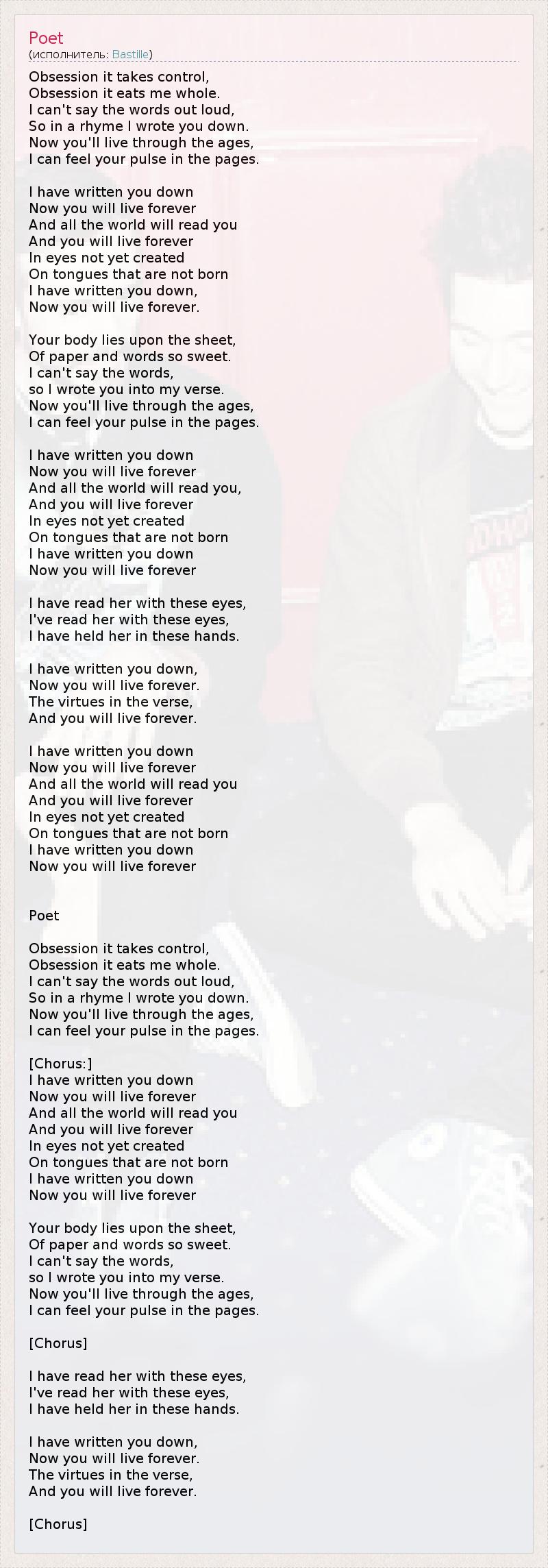 Это интересно:Bastille — группа из Лондона, Англия, образована в 2010 году. Изначально Bastille создавалась в качестве сольного проекта певца, продюсера и автора песен Dan Smith, который позже решил создать группу.... продолжение