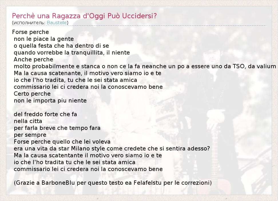 А как ты думаешь, о чем песня "Perchè una Ragazza d'Oggi Può Uccidersi?" ?