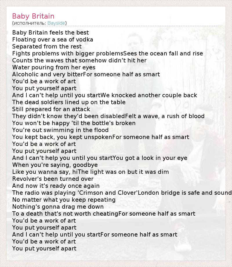 А как ты думаешь, о чем песня "Baby Britain" ?