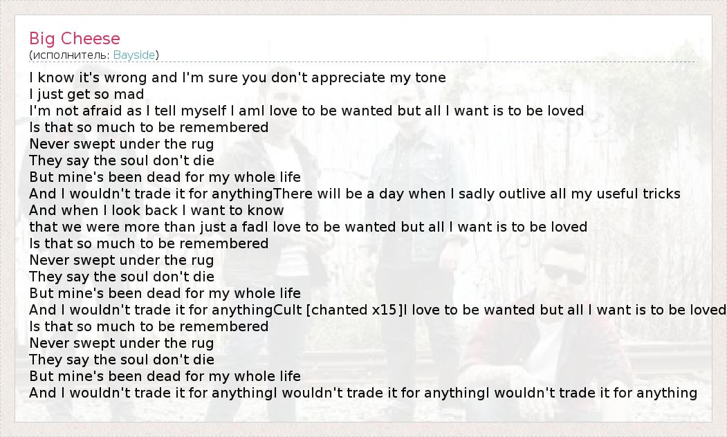 А как ты думаешь, о чем песня "Big Cheese" ?