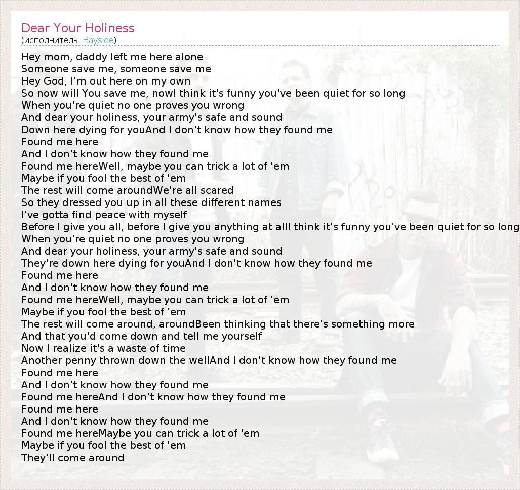 А как ты думаешь, о чем песня "Dear Your Holiness" ?