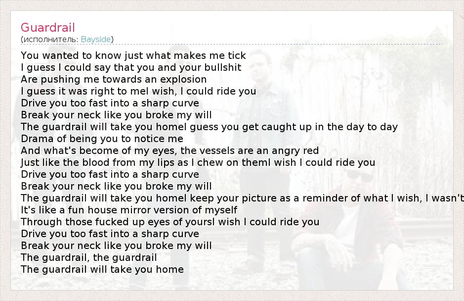 The guardrail will take you homeI keep your picture as a reminder of what I wish, I wasn't
