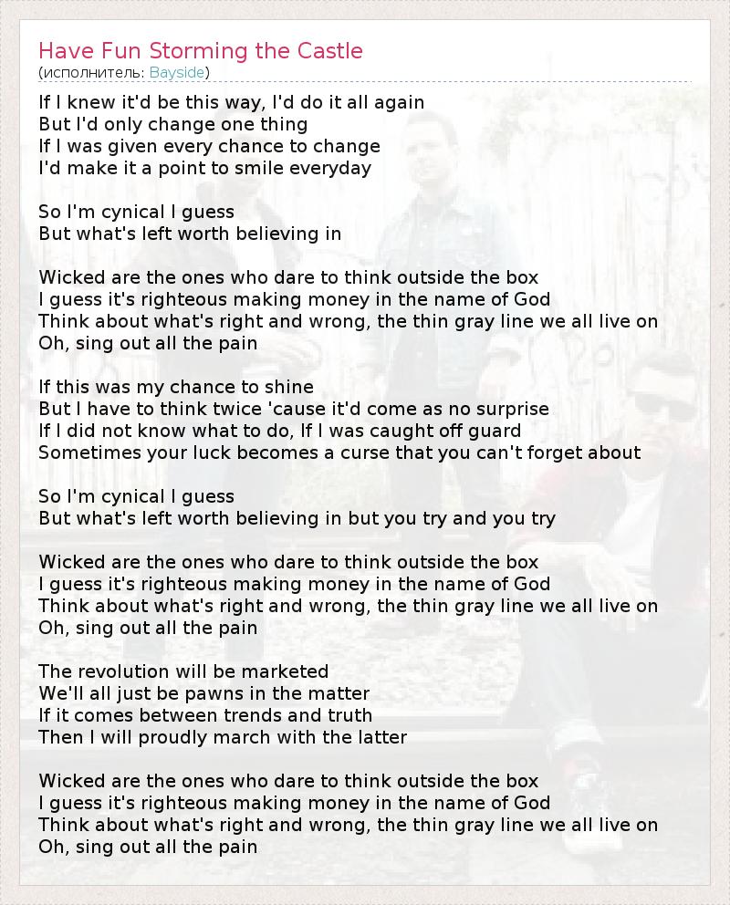 А как ты думаешь, о чем песня "Have Fun Storming the Castle" ?