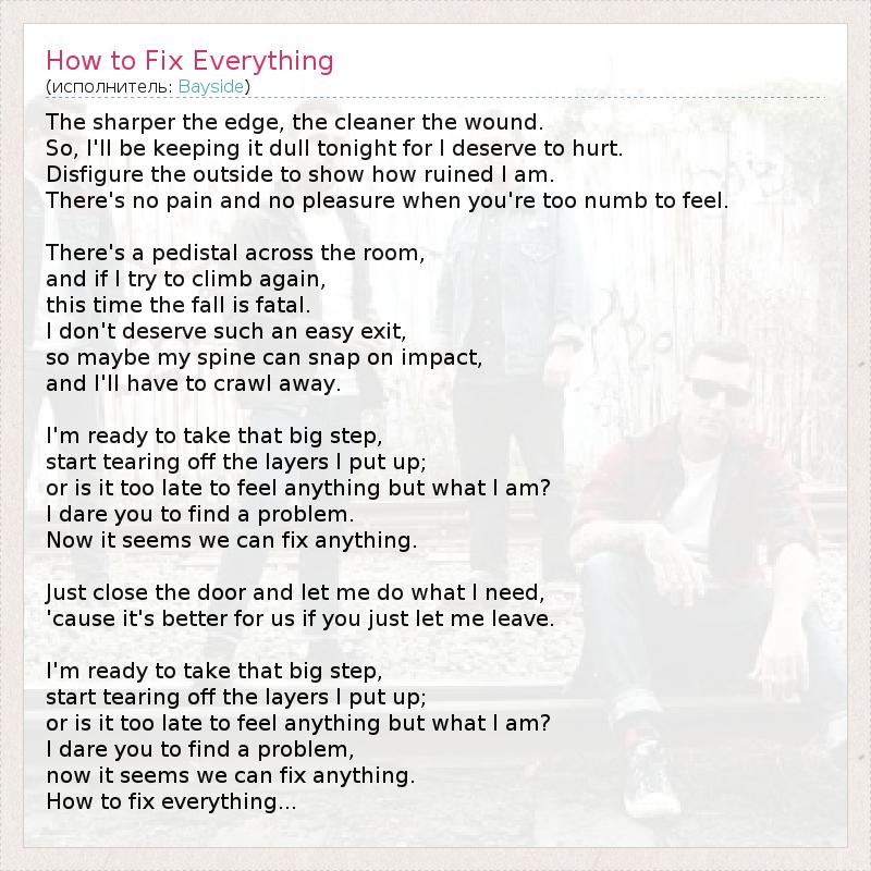 А как ты думаешь, о чем песня "How to Fix Everything" ?