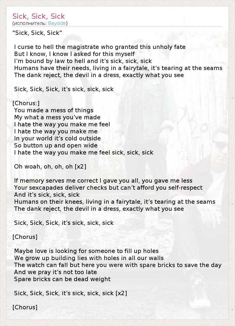 А как ты думаешь, о чем песня "Sick, Sick, Sick" ?