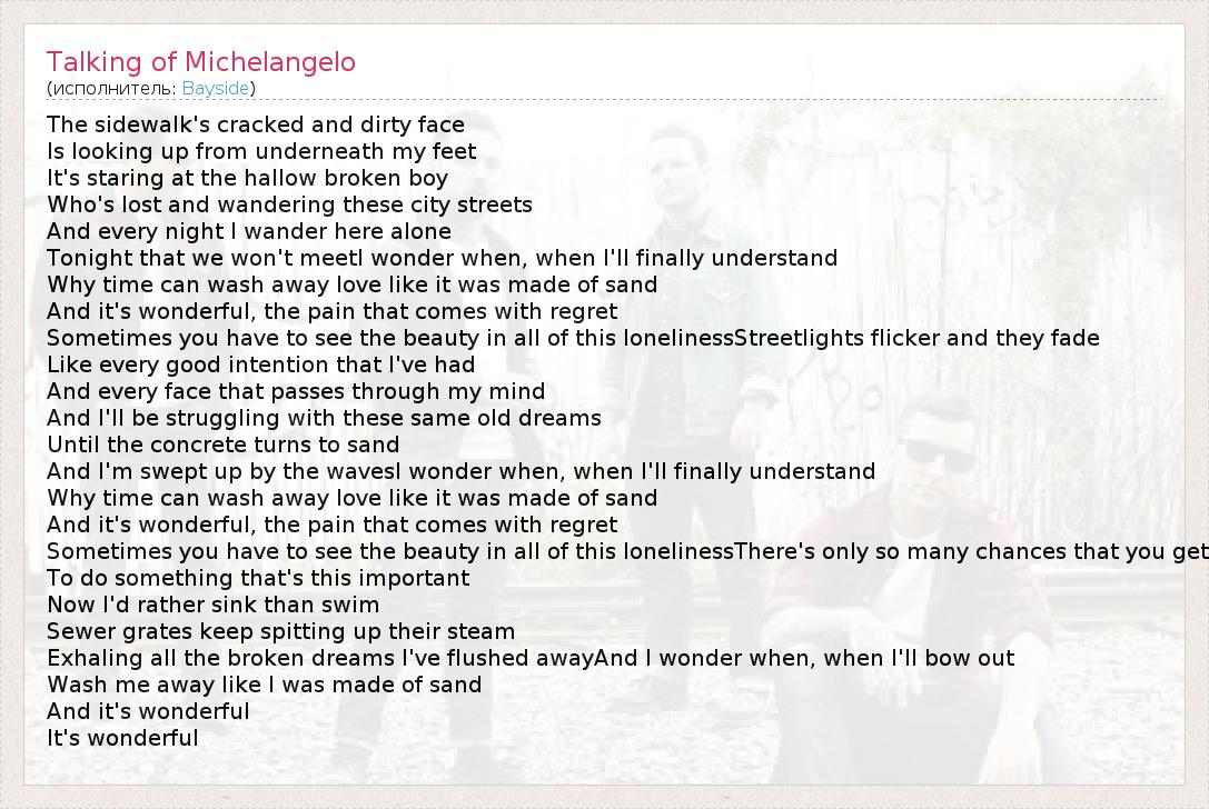 ГлавнаяИсполнителиBaysideTalking of Michelangelo