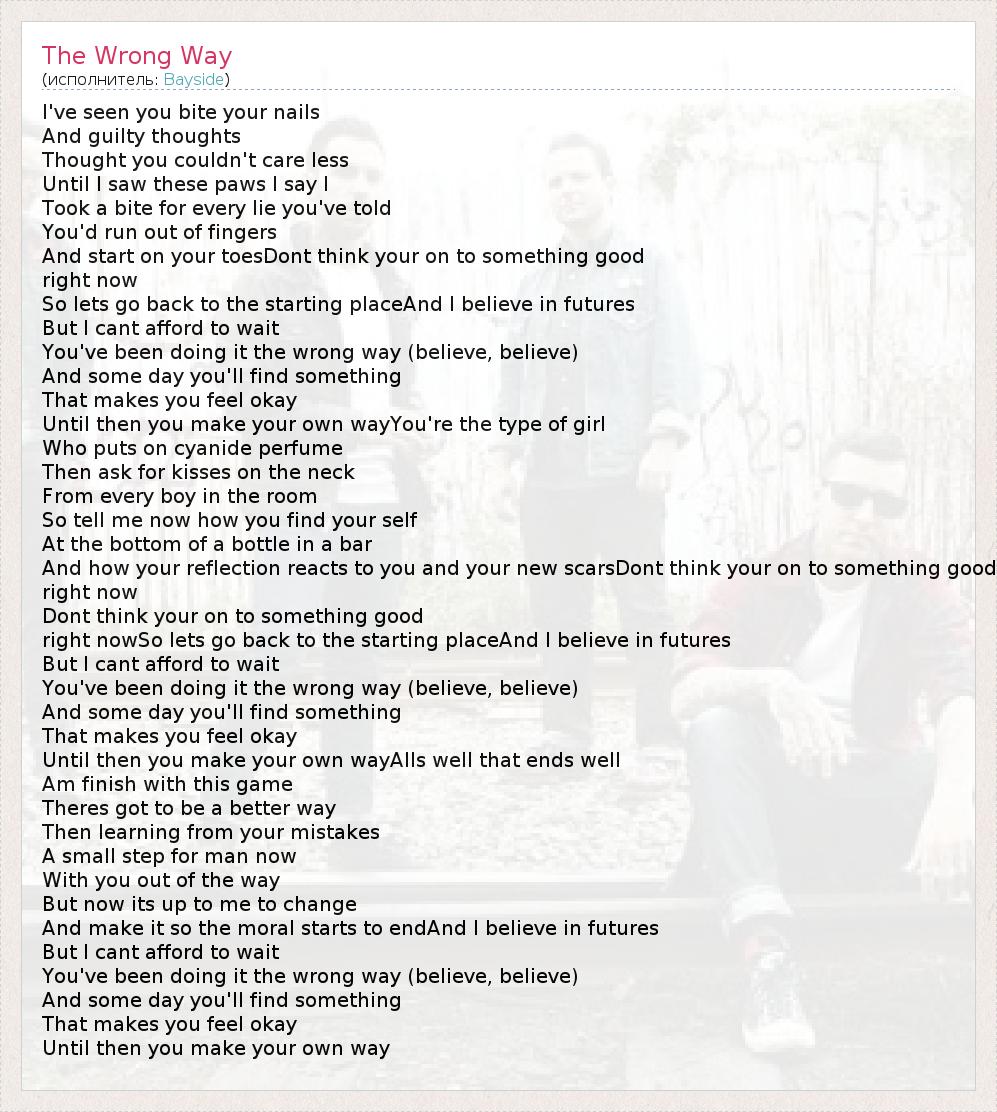 А как ты думаешь, о чем песня "The Wrong Way" ?