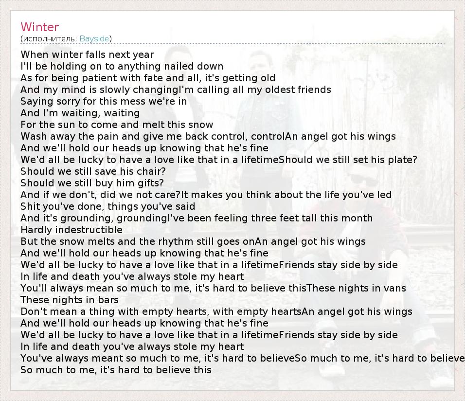 Это интересно:Американские рокеры «Bayside» собрались зимой 2000 года в Бэйсайде, Нью Йорк. Вскоре после своего формирования, группа уже делила сцену с именитыми коллегами «Alkaline Trio», «Taking Back Sunday» и «The Used», чем собственно и обратила на себя внимание бруклинского лэйбла «Dying Wish Records» выпустившего в последствии первый ЕР «Long Stories Short».В период с 2001 по 2002 группа «Bayside» продолжила свою концертную деятельность,... продолжение