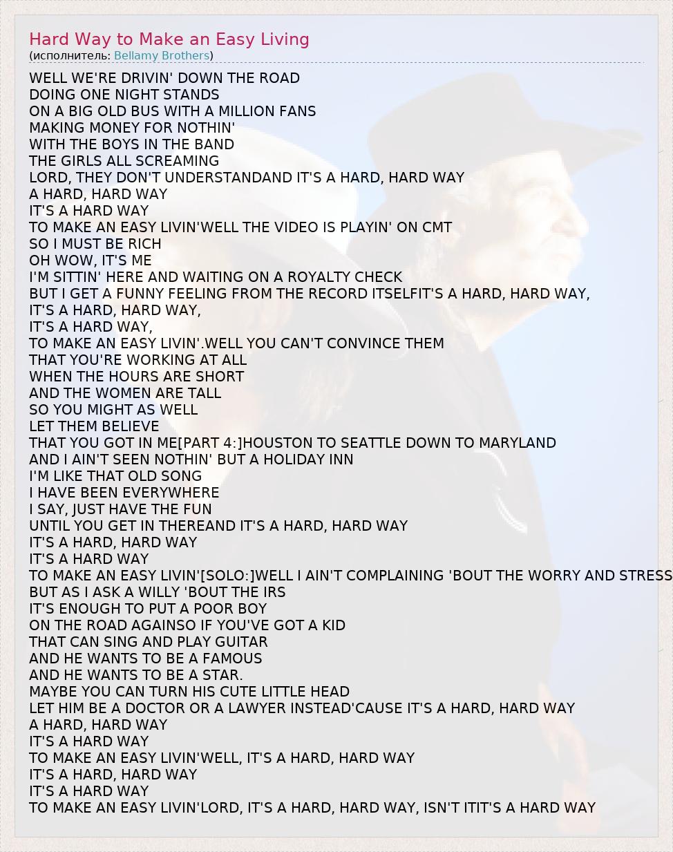 А как ты думаешь, о чем песня "Hard Way to Make an Easy Living" ?