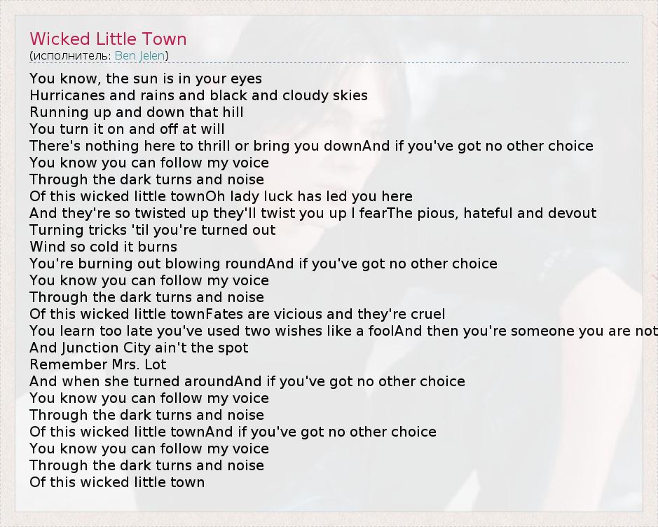 А как ты думаешь, о чем песня "Wicked Little Town" ?