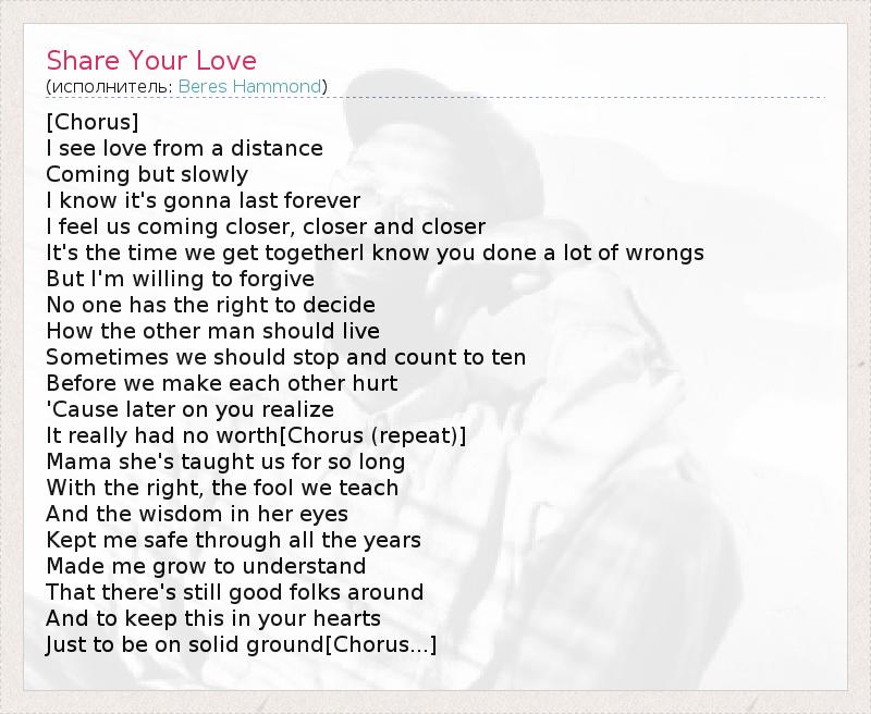 А как ты думаешь, о чем песня "Share Your Love" ?