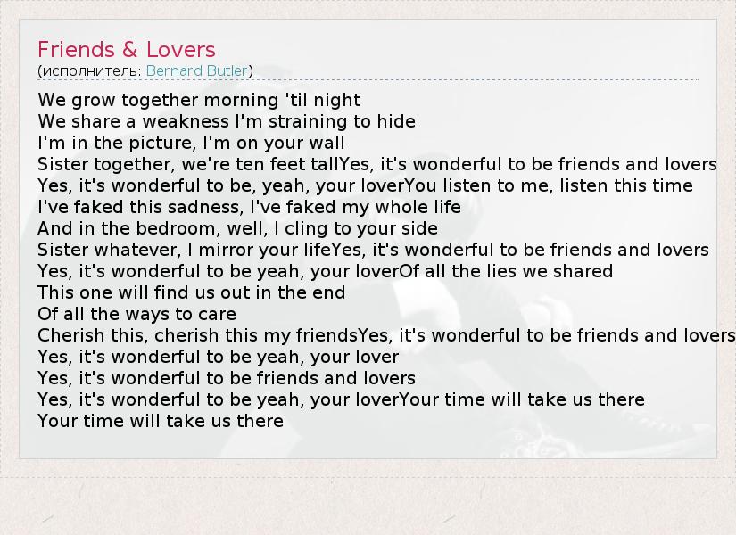 А как ты думаешь, о чем песня "Friends & Lovers" ?