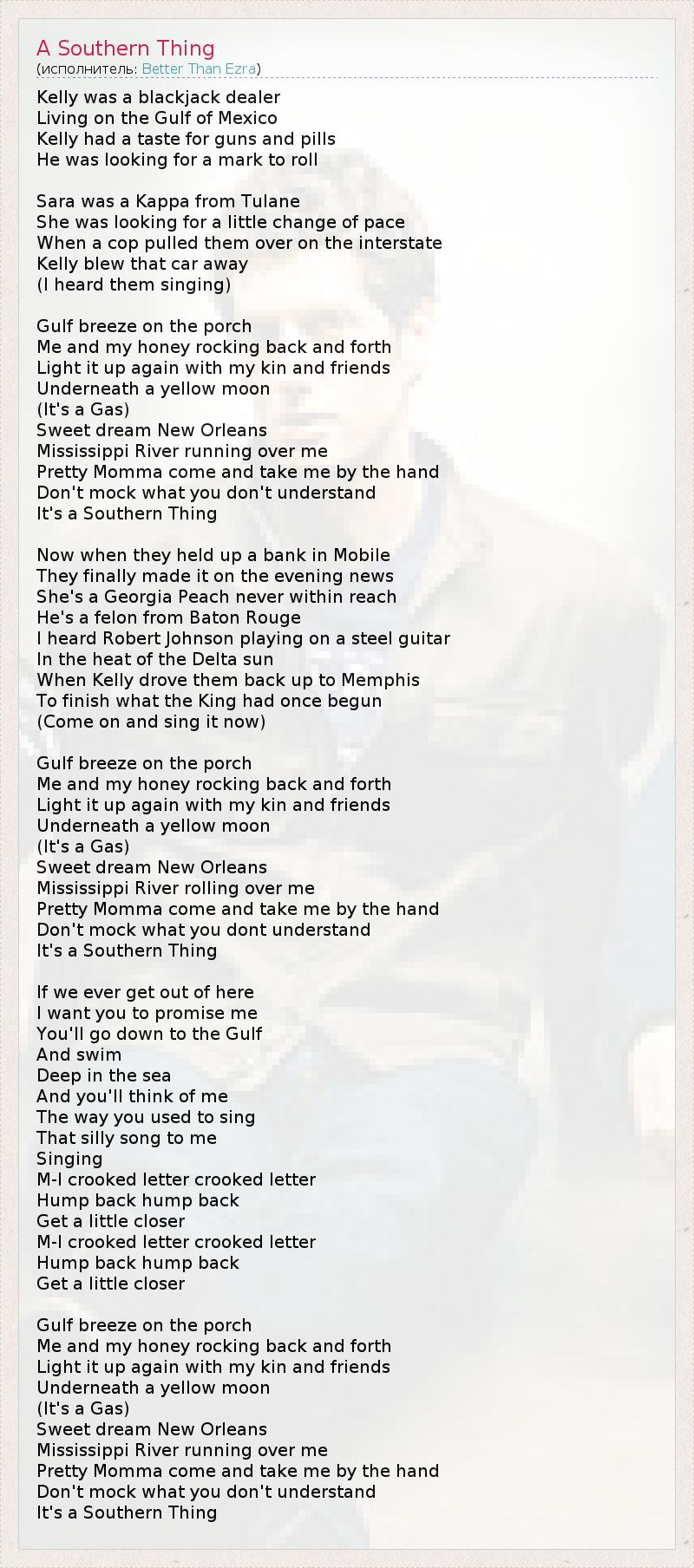 А как ты думаешь, о чем песня "A Southern Thing" ?