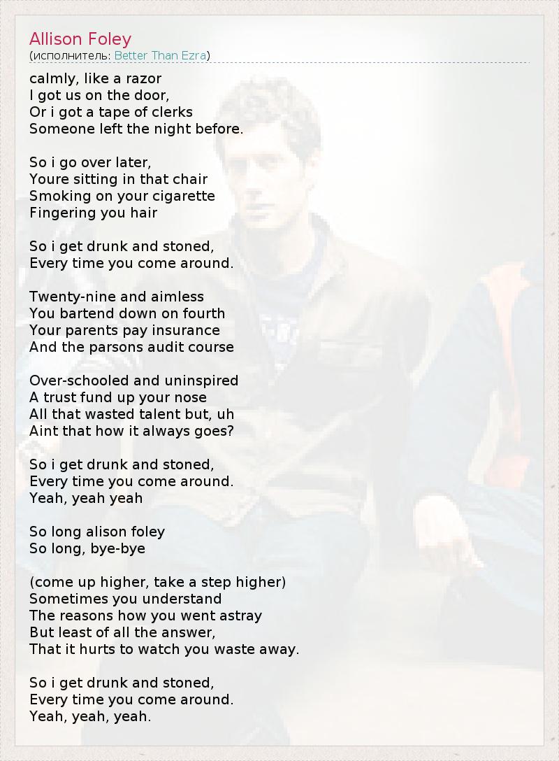 А как ты думаешь, о чем песня "Allison Foley" ?