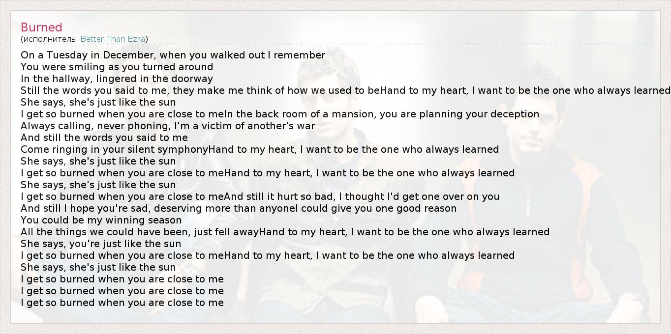 I get so burned when you are close to meAnd still it hurt so bad, I thought I'd get one over on you