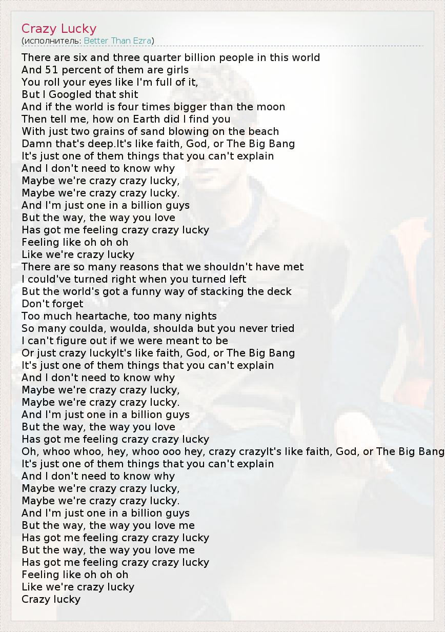 А как ты думаешь, о чем песня "Crazy Lucky" ?