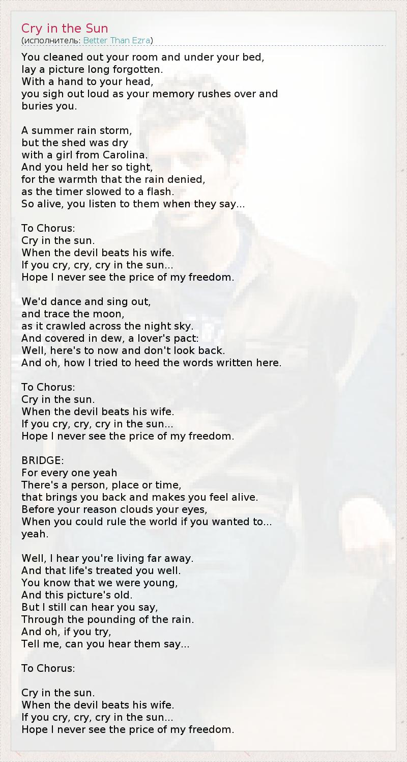 А как ты думаешь, о чем песня "Cry in the Sun" ?