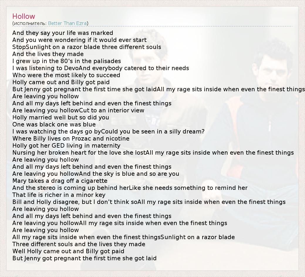 Are leaving you hollowAll my rage sits inside when even the finest things