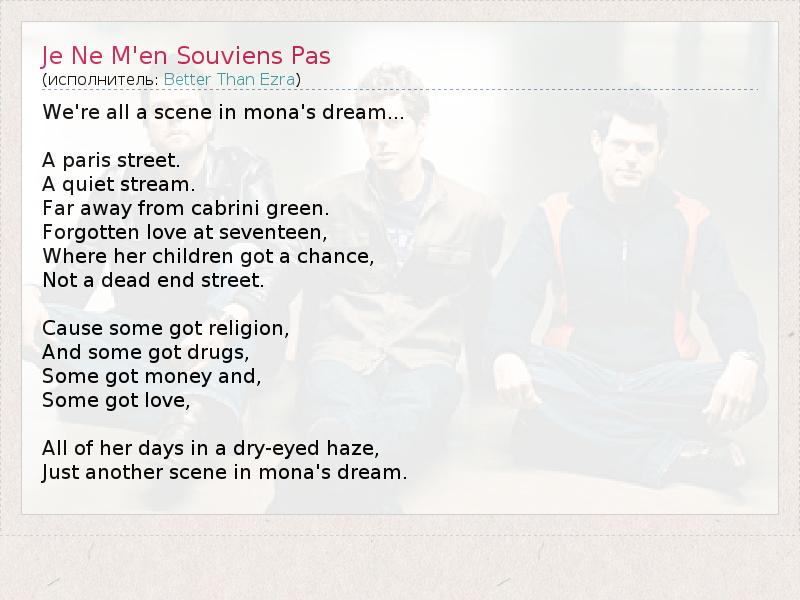 А как ты думаешь, о чем песня "Je Ne M'en Souviens Pas" ?