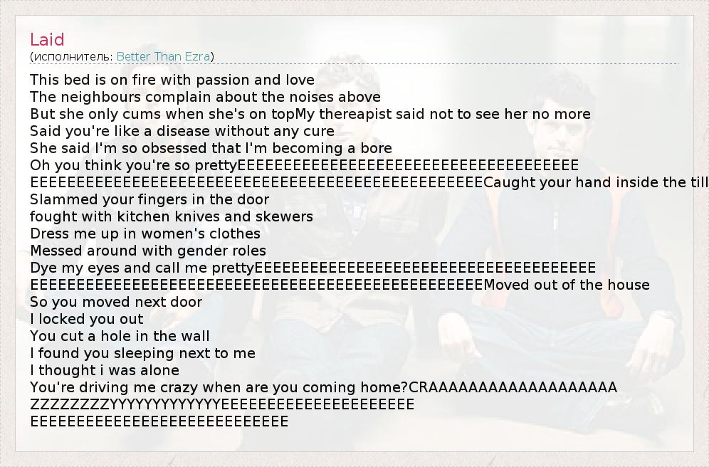 Это интересно:Вместе со схожими по стилю "Goo Goo Dolls" нью-орлеанцы " Better Than Ezra " проложили дорогу множеству альт-поп команд конца 90-х типа "Semisonic", "Matchbox Twenty" и "Third Eye Blind". Проект организовали в 1988 году четверо студентов Луизианского Государственного Университета – Кевин Гриффин (вокал, гитара), Джоэль Ранделл (гитара), Том Драммонд (бас) и Кэри Боннекэйз (ударные). В начале своей... продолжение