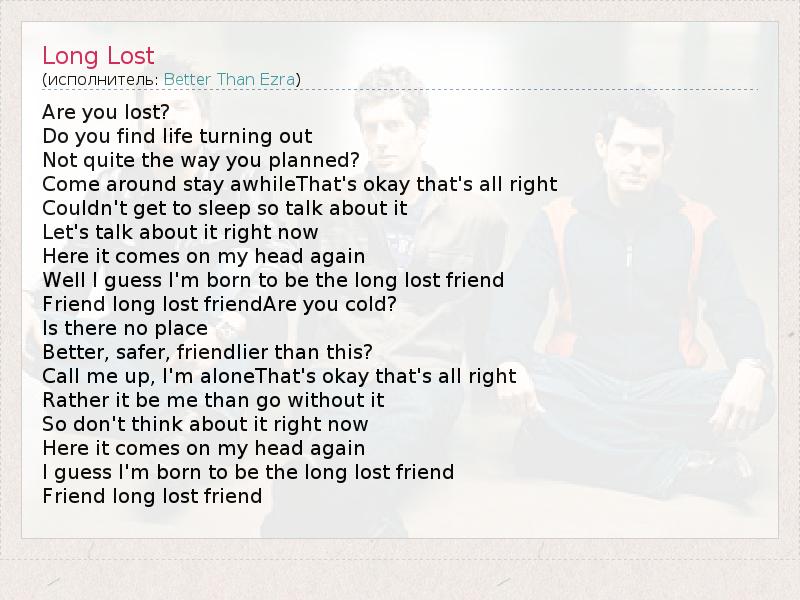 Well I guess I'm born to be the long lost friend