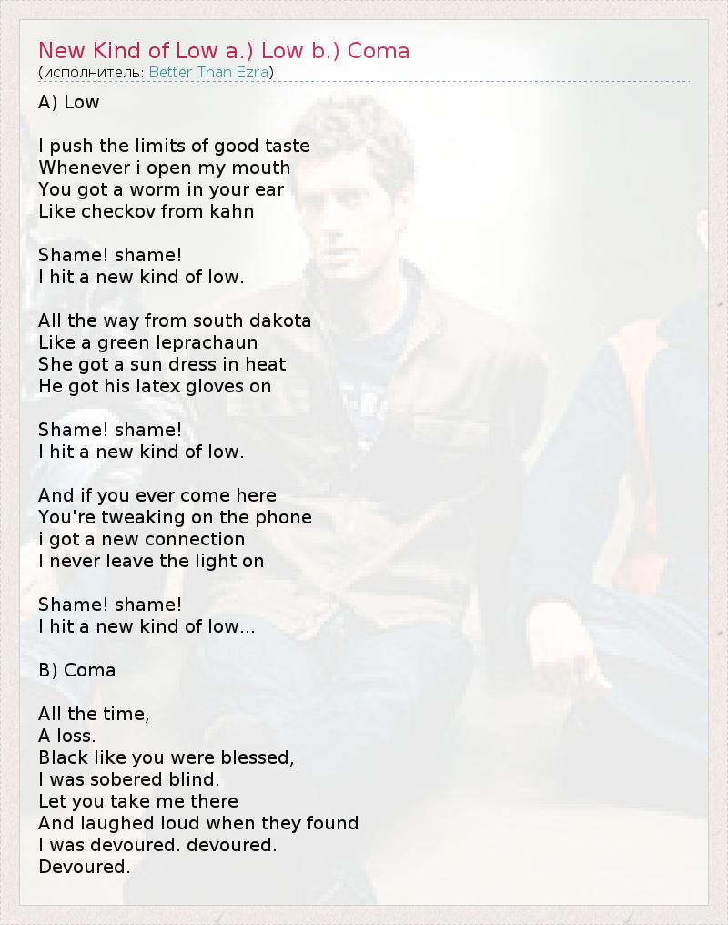 А как ты думаешь, о чем песня "New Kind of Low a.) Low b.) Coma" ?