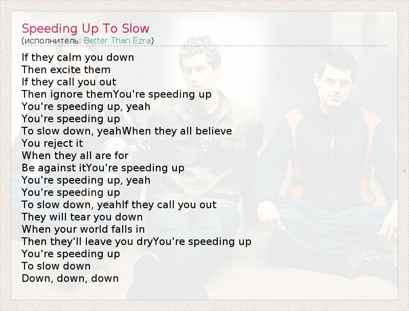 А как ты думаешь, о чем песня "Speeding Up To Slow" ?