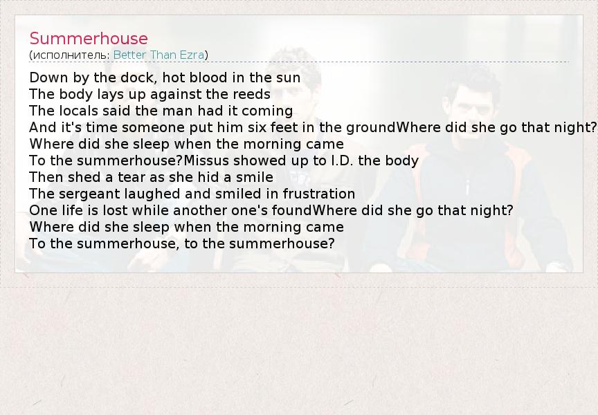 А как ты думаешь, о чем песня "Summerhouse" ?