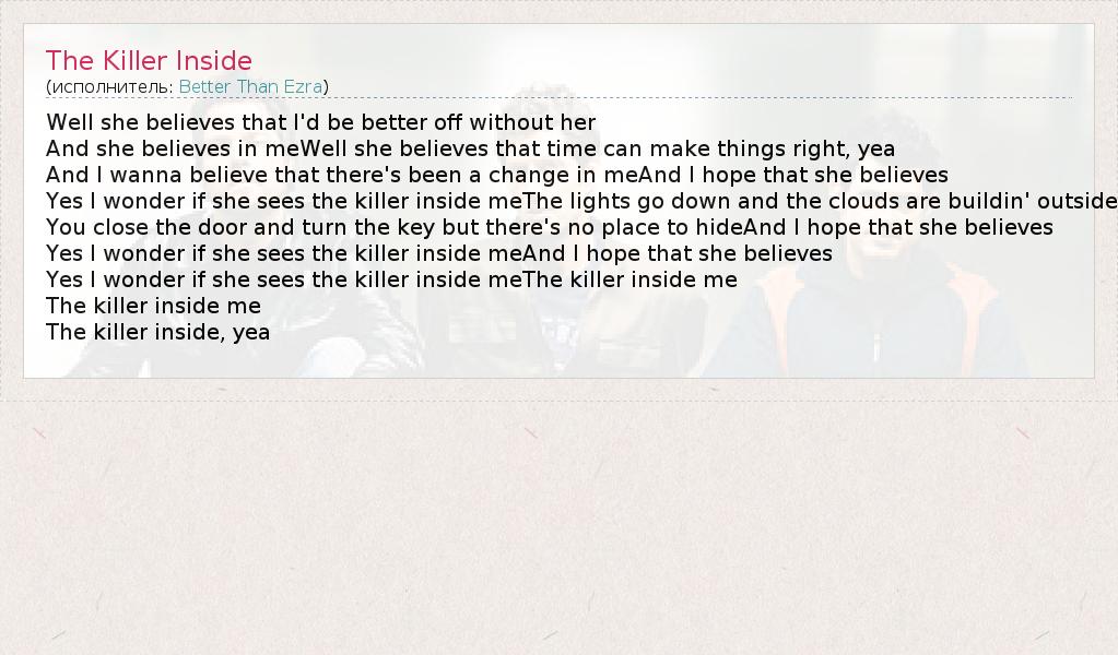 Yes I wonder if she sees the killer inside meThe killer inside me
