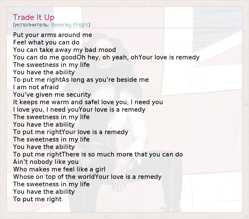 А как ты думаешь, о чем песня "Trade It Up" ?