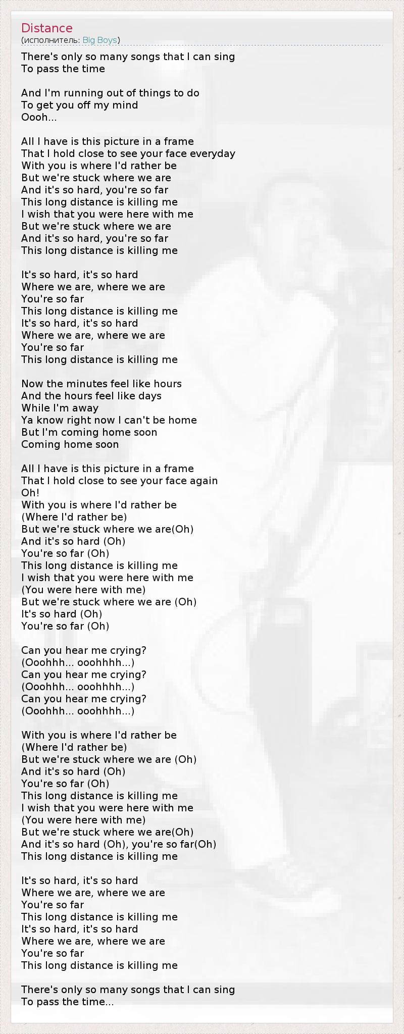 Это большое расстояние убивает меня.