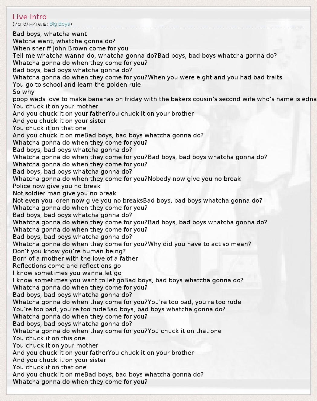 I know sometimes you want to let goBad boys, bad boys whatcha gonna do?