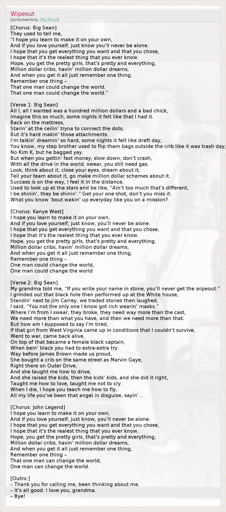 My grandma told me, “If you write your name in stone, you'll never get the wipeout.”