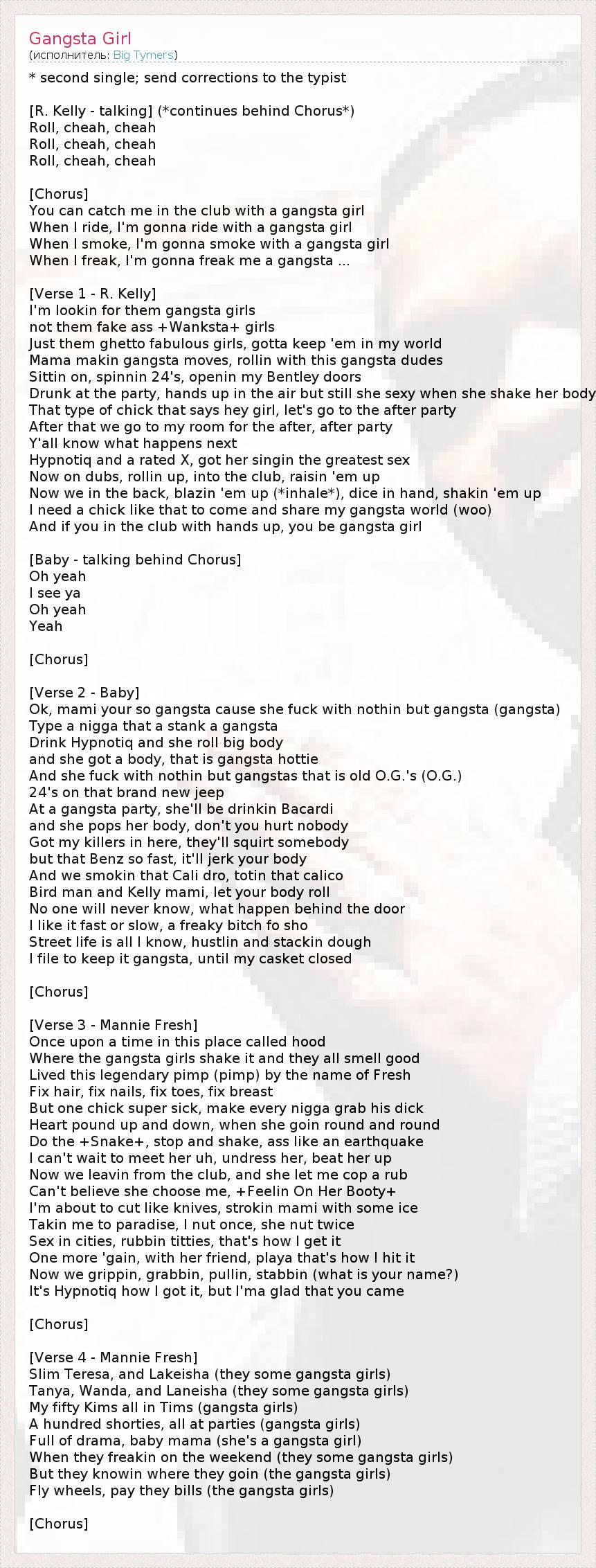 А как ты думаешь, о чем песня "Gangsta Girl" ?