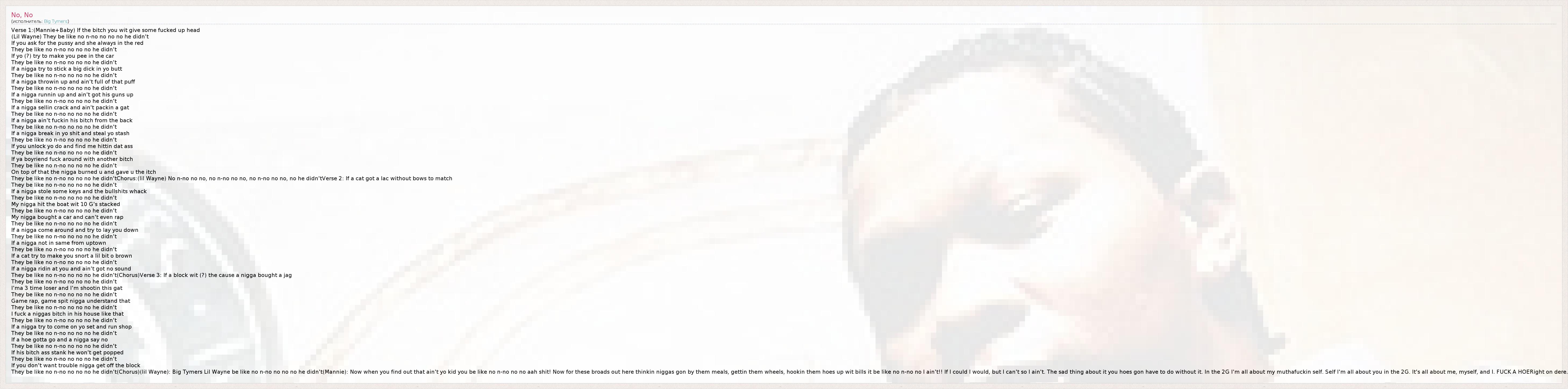 They be like no n-no no no no he didn'tChorus:(lil Wayne) No n-no no no, no n-no no no, no n-no no no, no he didn'tVerse 2: If a cat got a lac without bows to match