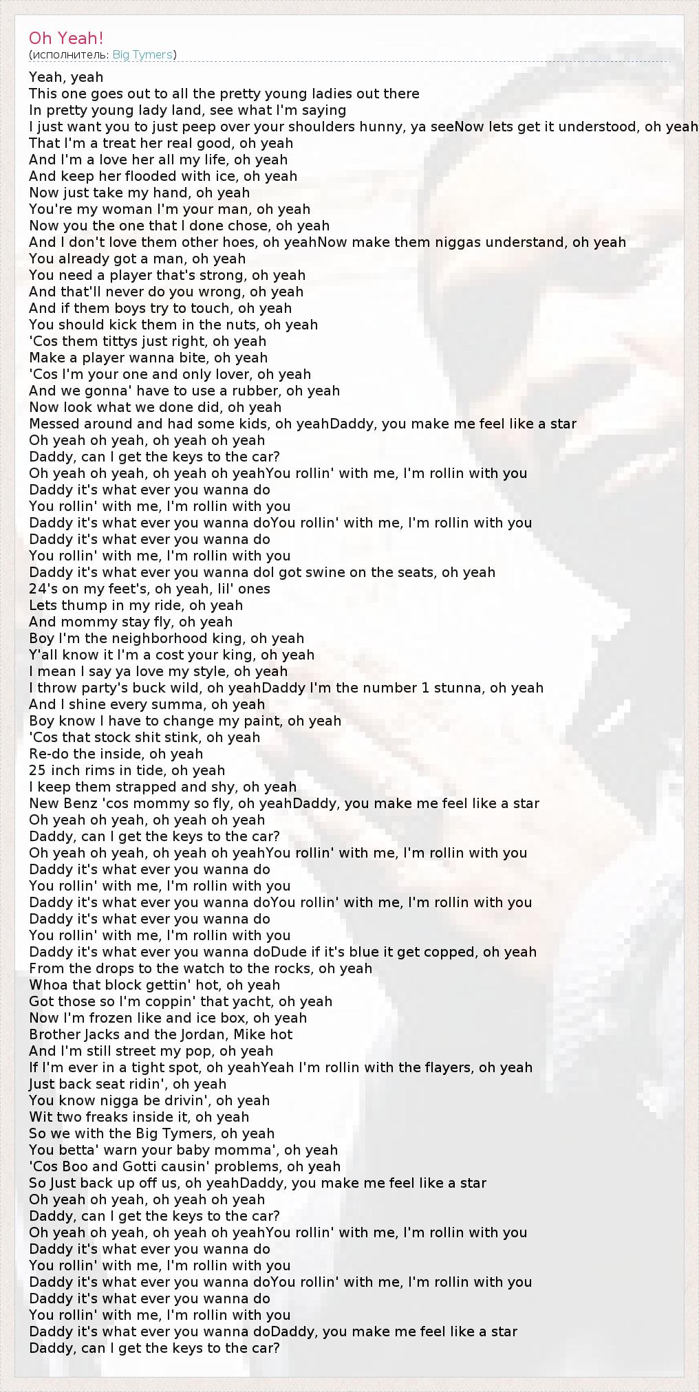 А как ты думаешь, о чем песня "Oh Yeah!" ?