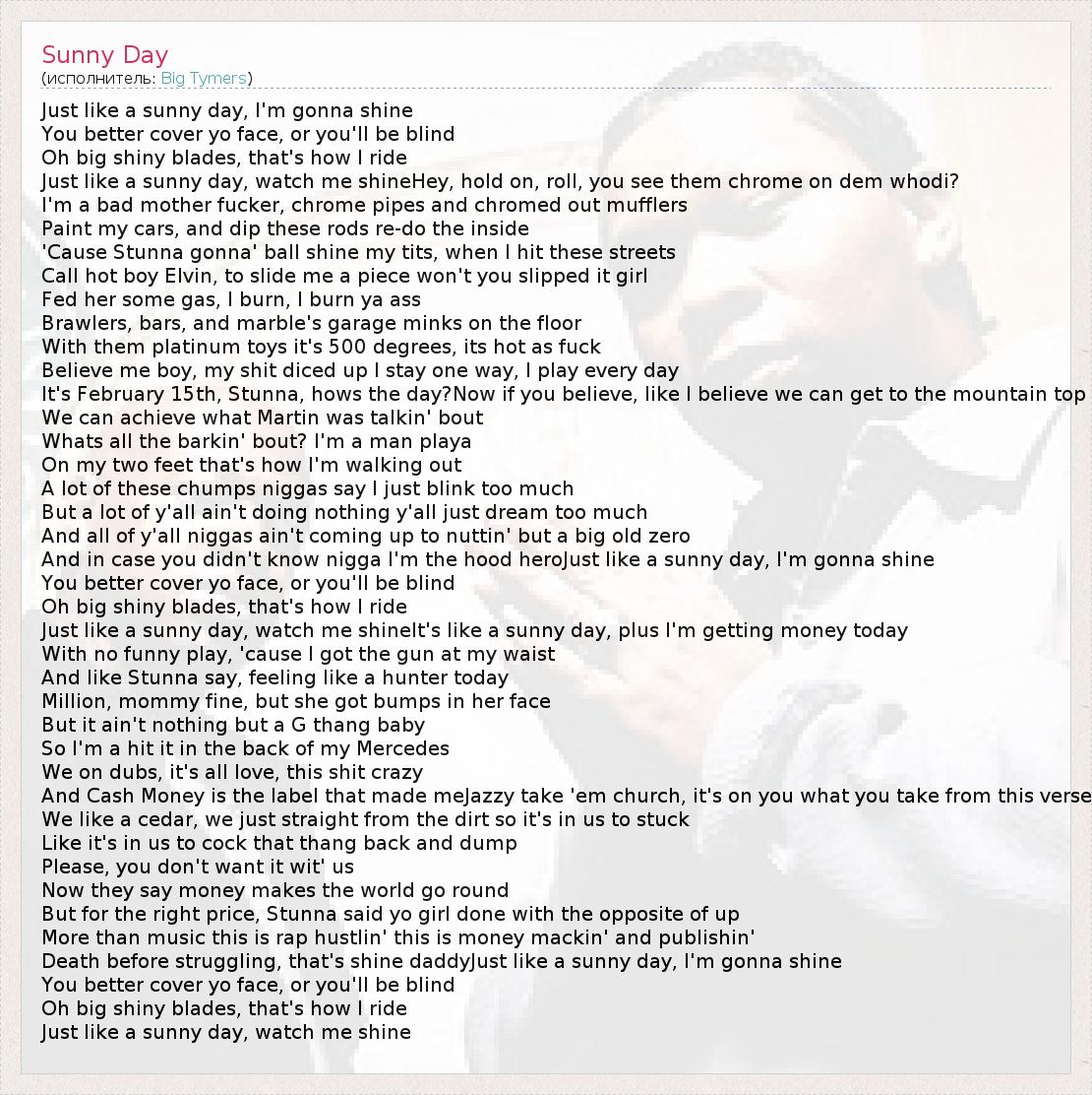 А как ты думаешь, о чем песня "Sunny Day" ?