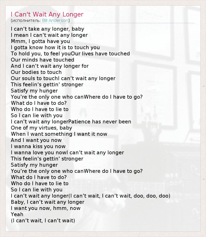 I Can't Wait Any Longer
