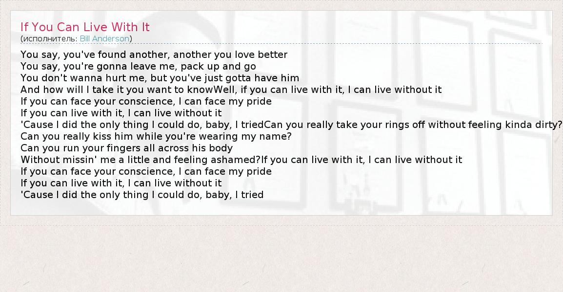 А как ты думаешь, о чем песня "If You Can Live With It" ?