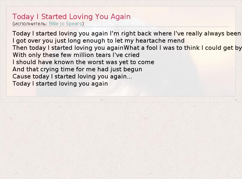 Today I started loving you again I'm right back where I've really always been