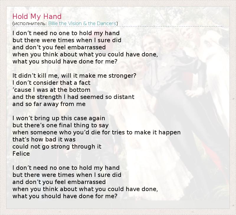 А как ты думаешь, о чем песня "Hold My Hand" ?