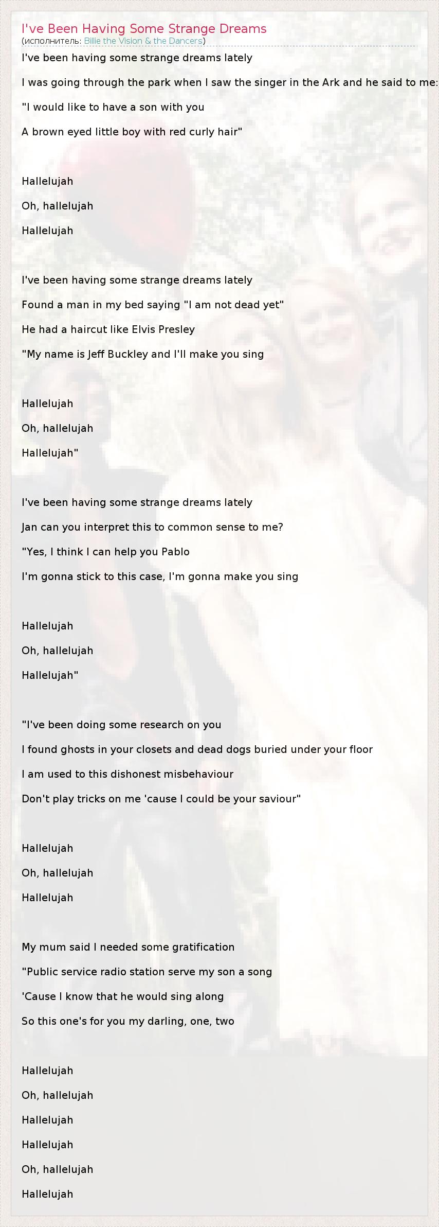 ГлавнаяИсполнителиBillie the Vision & the DancersI've Been Having Some Strange Dreams