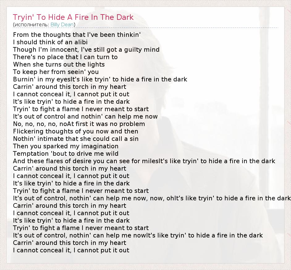 А как ты думаешь, о чем песня "Tryin' To Hide A Fire In The Dark" ?