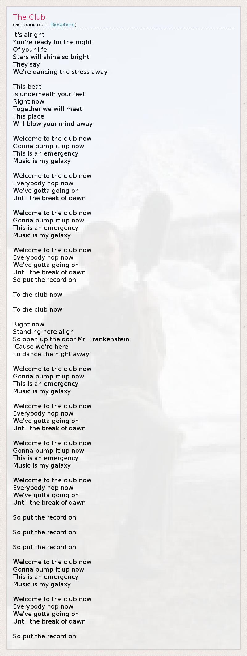 А как ты думаешь, о чем песня "The Club" ?