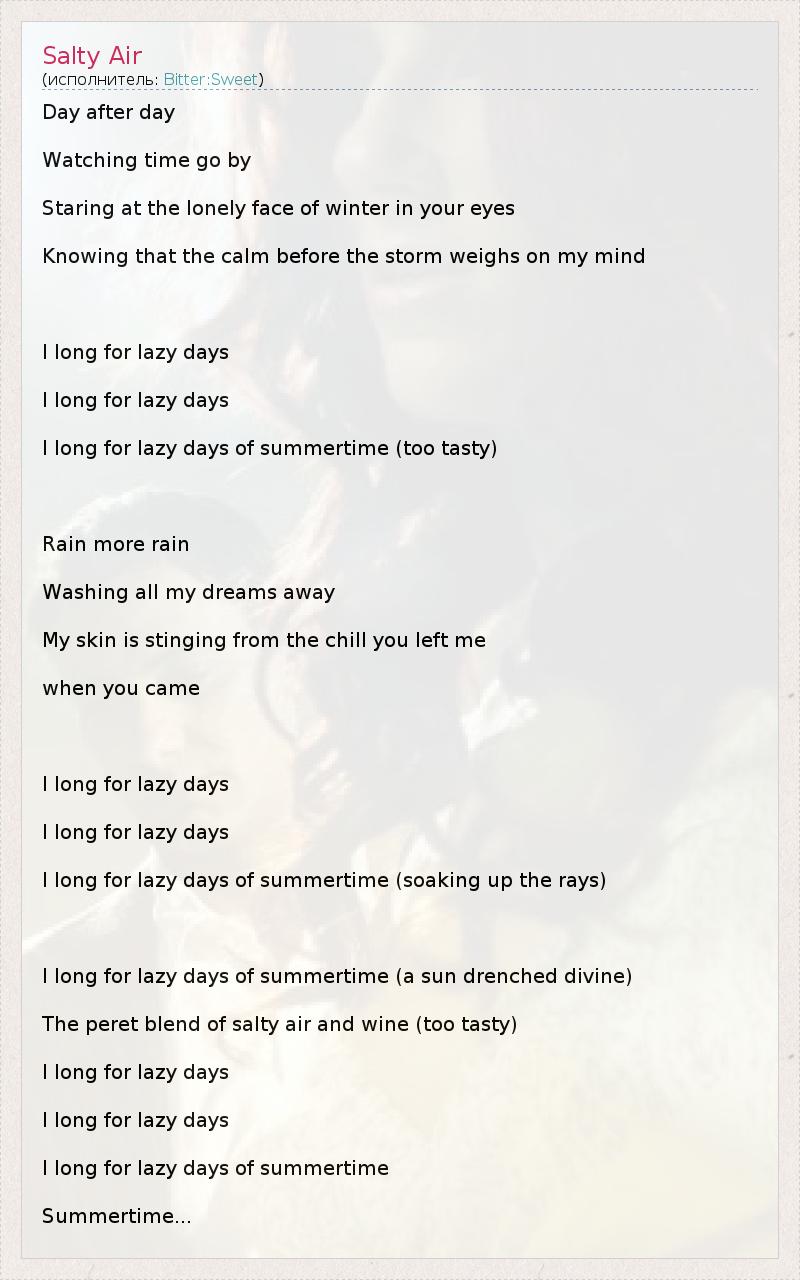 А как ты думаешь, о чем песня "Salty Air" ?