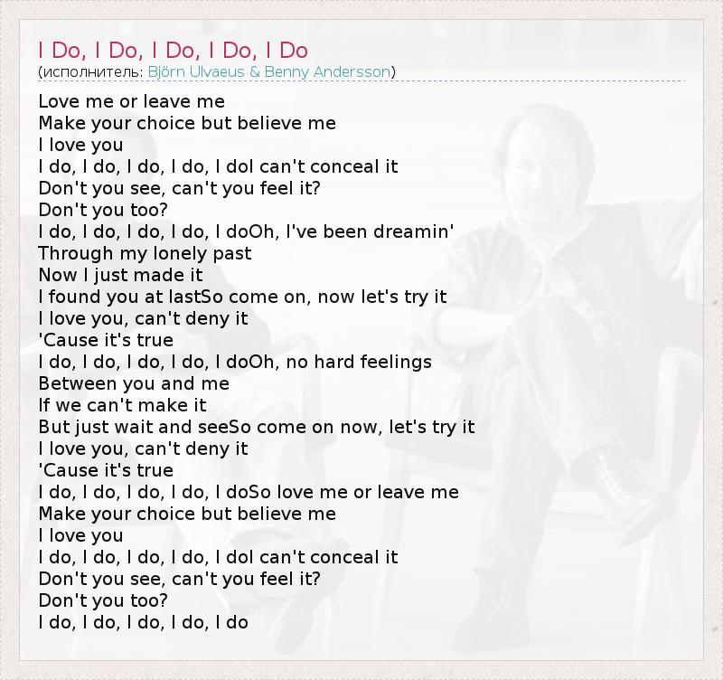 А как ты думаешь, о чем песня "I Do, I Do, I Do, I Do, I Do" ?