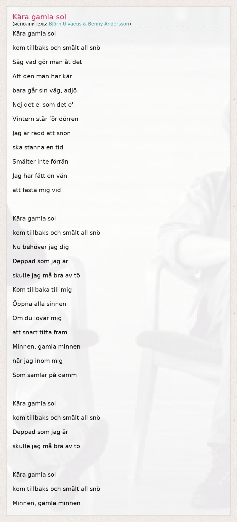 А как ты думаешь, о чем песня "Kära gamla sol" ?