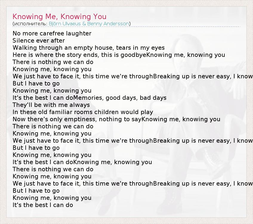 А как ты думаешь, о чем песня "Knowing Me, Knowing You" ?