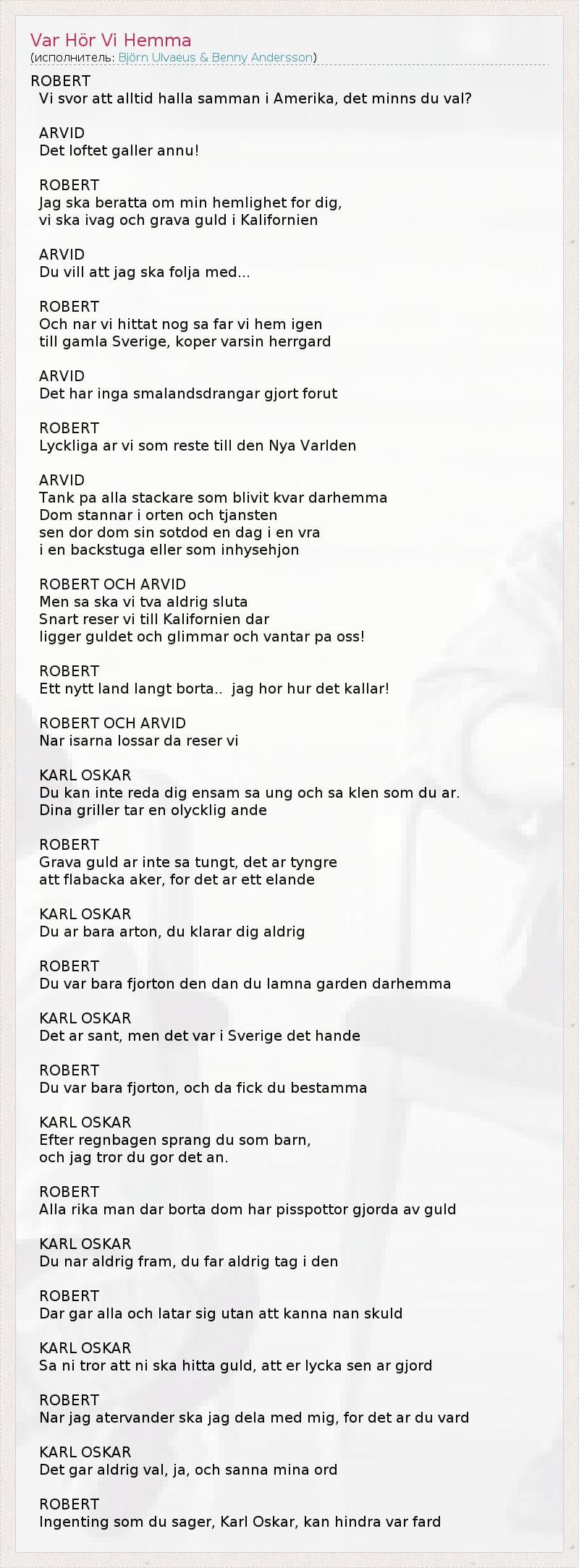 А как ты думаешь, о чем песня "Var Hör Vi Hemma" ?