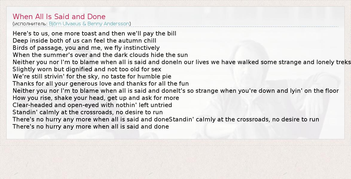 А как ты думаешь, о чем песня "When All Is Said and Done" ?
